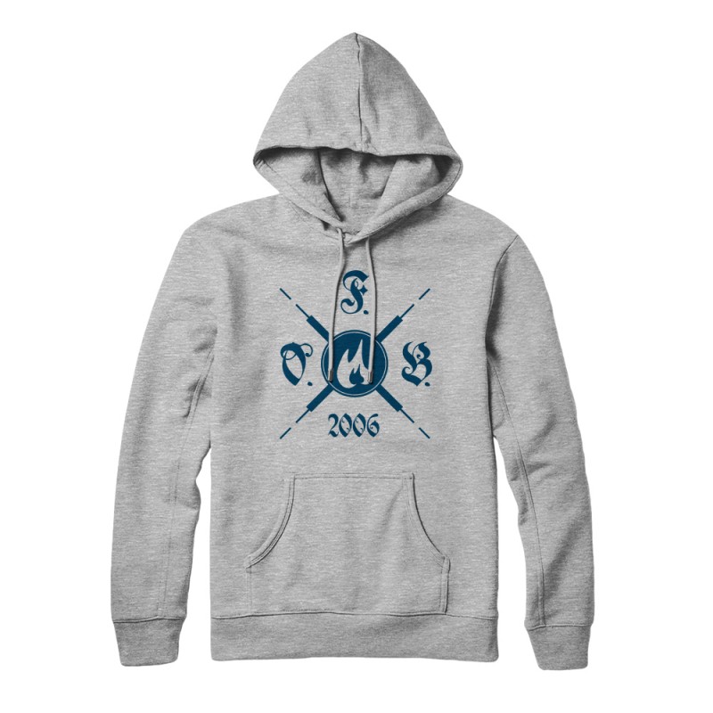 ブラッシュドフリースのスウェットシャツ。カンガルーポケット。リブ袖口とウエストバンド。紐付きでコントラストのラインのフード。