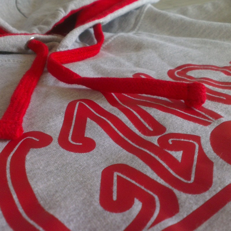 ブラッシュドフリースのスウェットシャツ。カンガルーポケット。リブ袖口とウエストバンド。紐付きでコントラストのラインのフード。