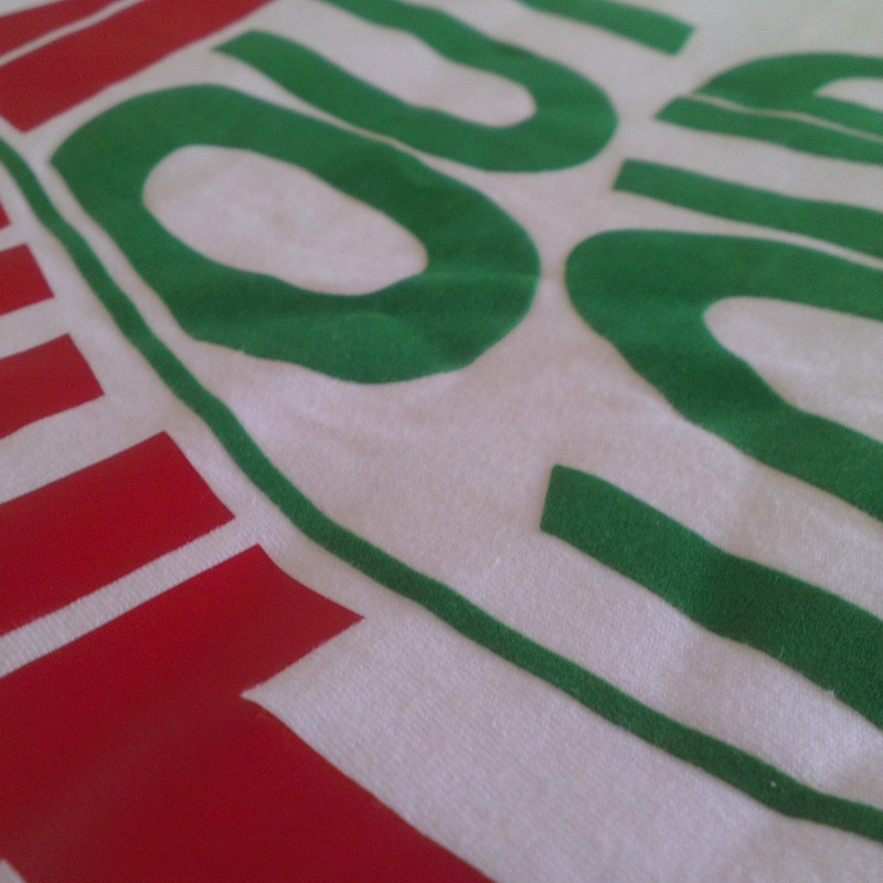 カッティングチュブラーTシャツ、ダブルスティッチのカラー・袖・Tシャツ下部、肩から肩まで補強テープ